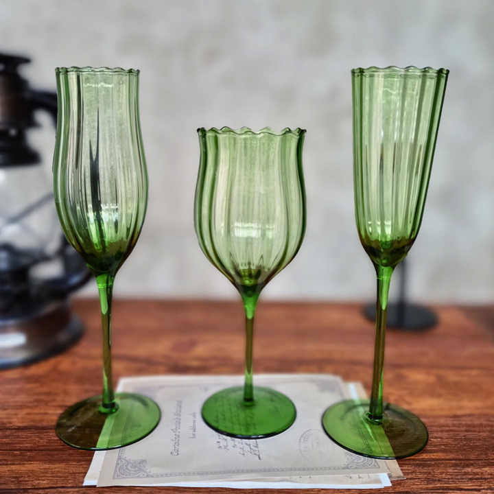 Solhui Vintage Green Wave Glass Goblets Wine Glasses Long Thin Stem champagne Glass