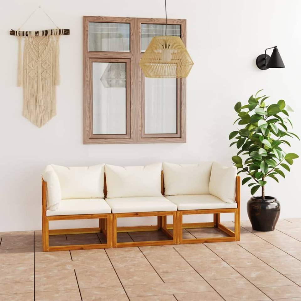 Divano da Giardino Modulare a 3 Posti in Legno di Acacia Massiccio, Colore Crema, Design Elegante