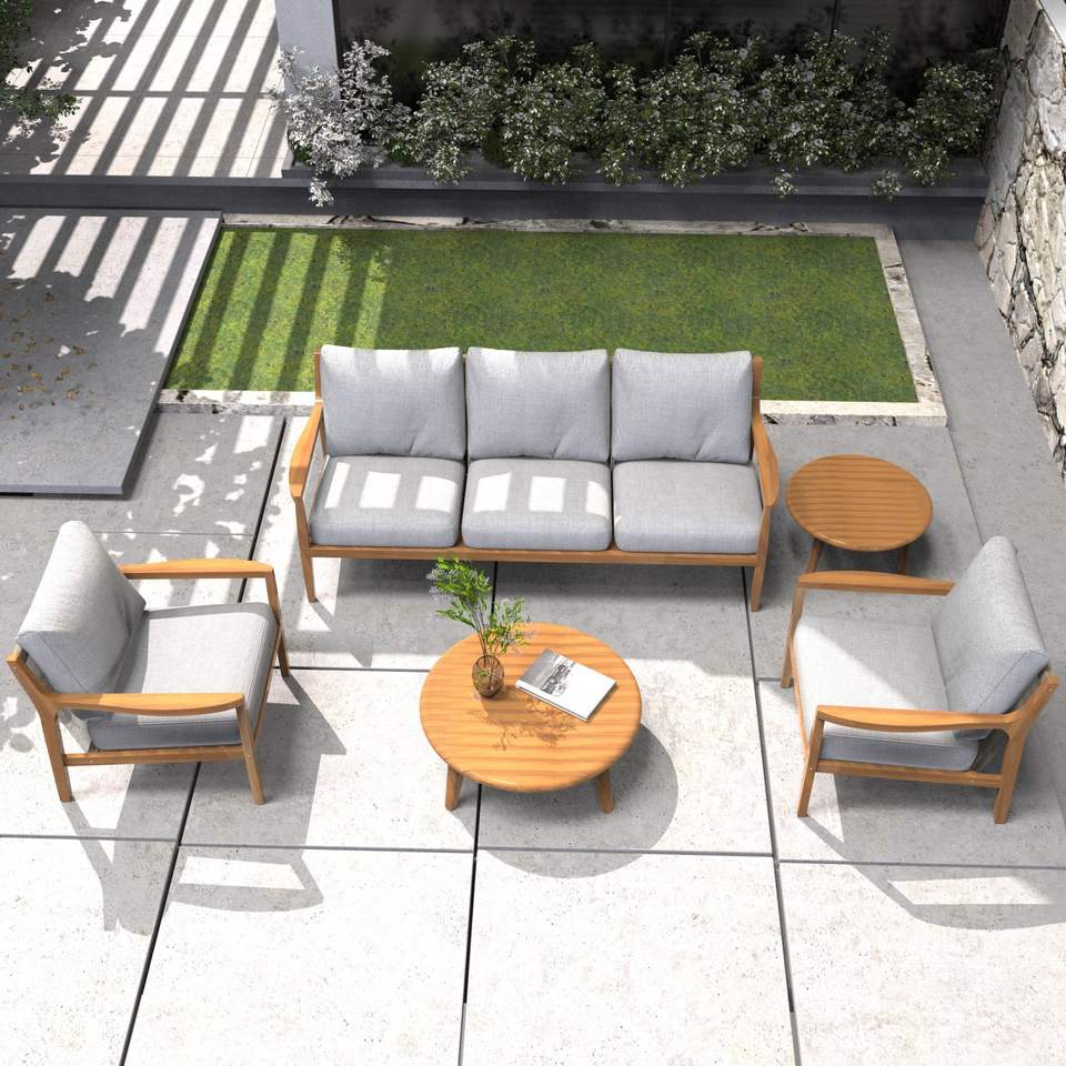 Set da conversazione da esterno in legno massello di acacia a 5 pezzi, divano componibile con cuscini e tavolino, modello D0100XFZ9J6