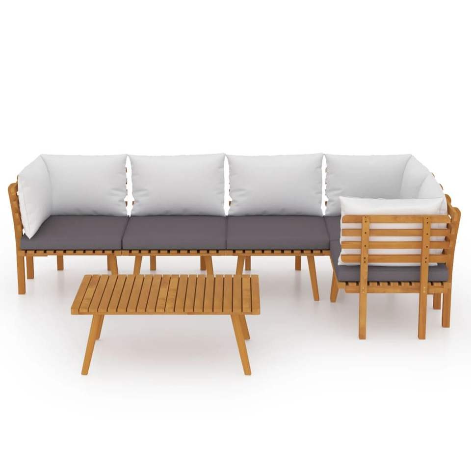 Solid Acacia Wood Brown 6-Piece Patio Lounge Set with Cushions