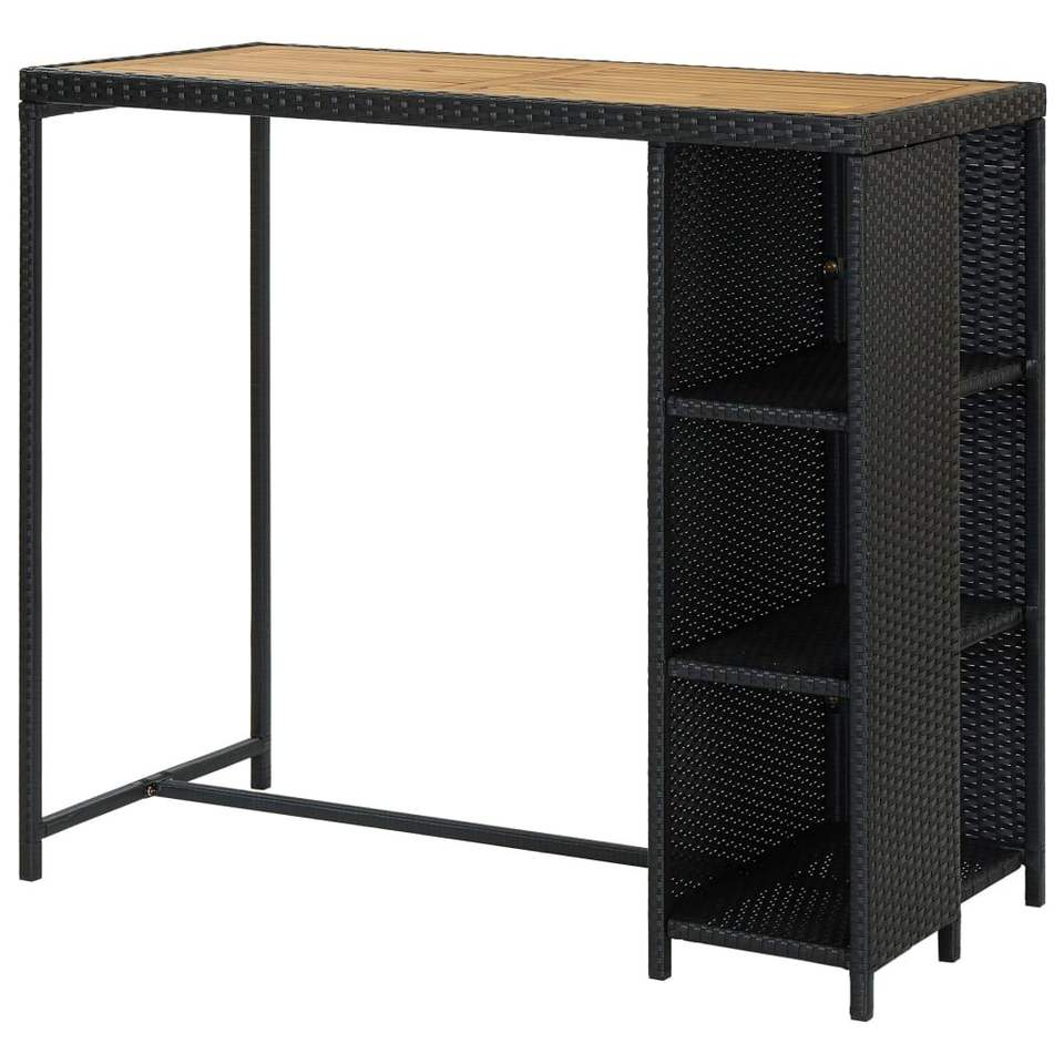 Tavolo da Bar in Legno Massello di Acacia con Rattan PE Nero e Struttura in Acciaio, Altezza Bancone, con Vano Portaoggetti