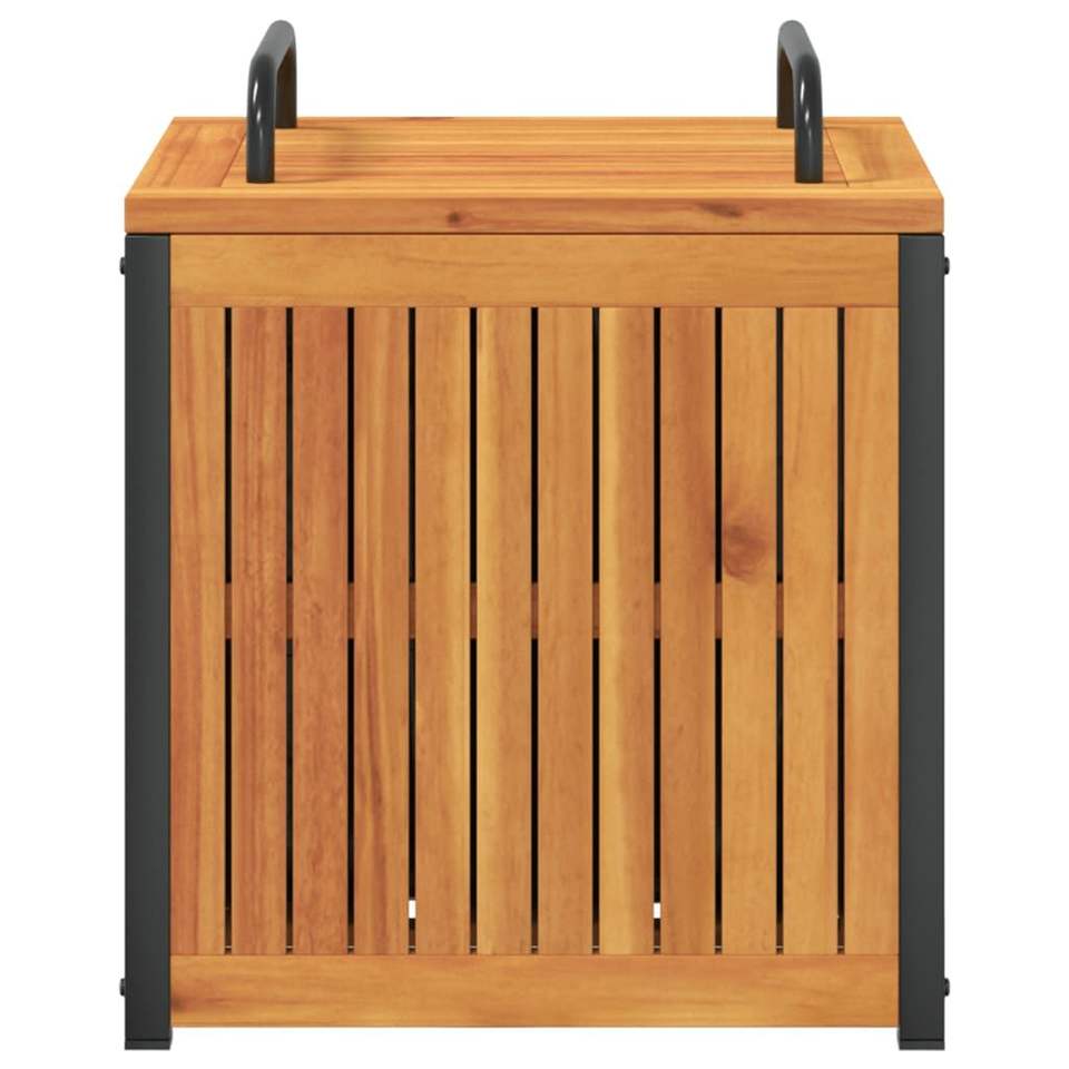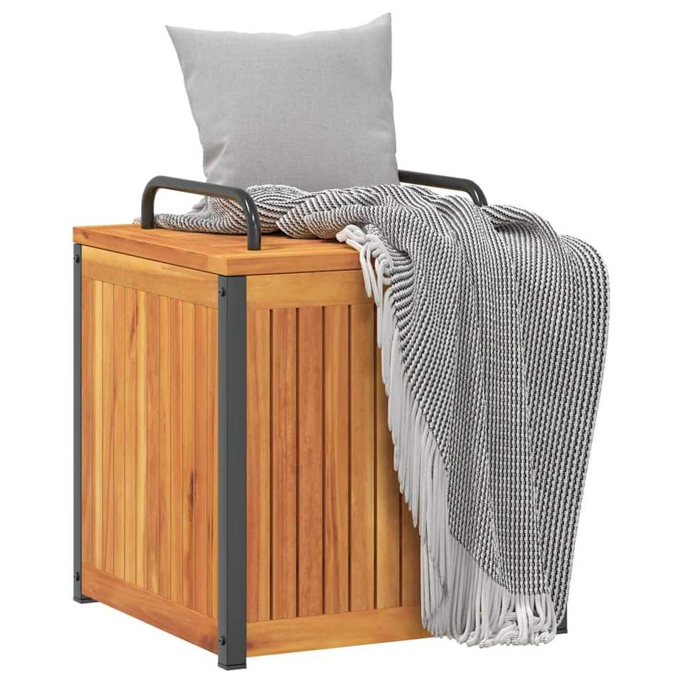 Scatola Portaoggetti in Legno Massello di Acacia con Cuscino e Unità di Stoccaggio in Acciaio Verniciato a Polvere Marrone