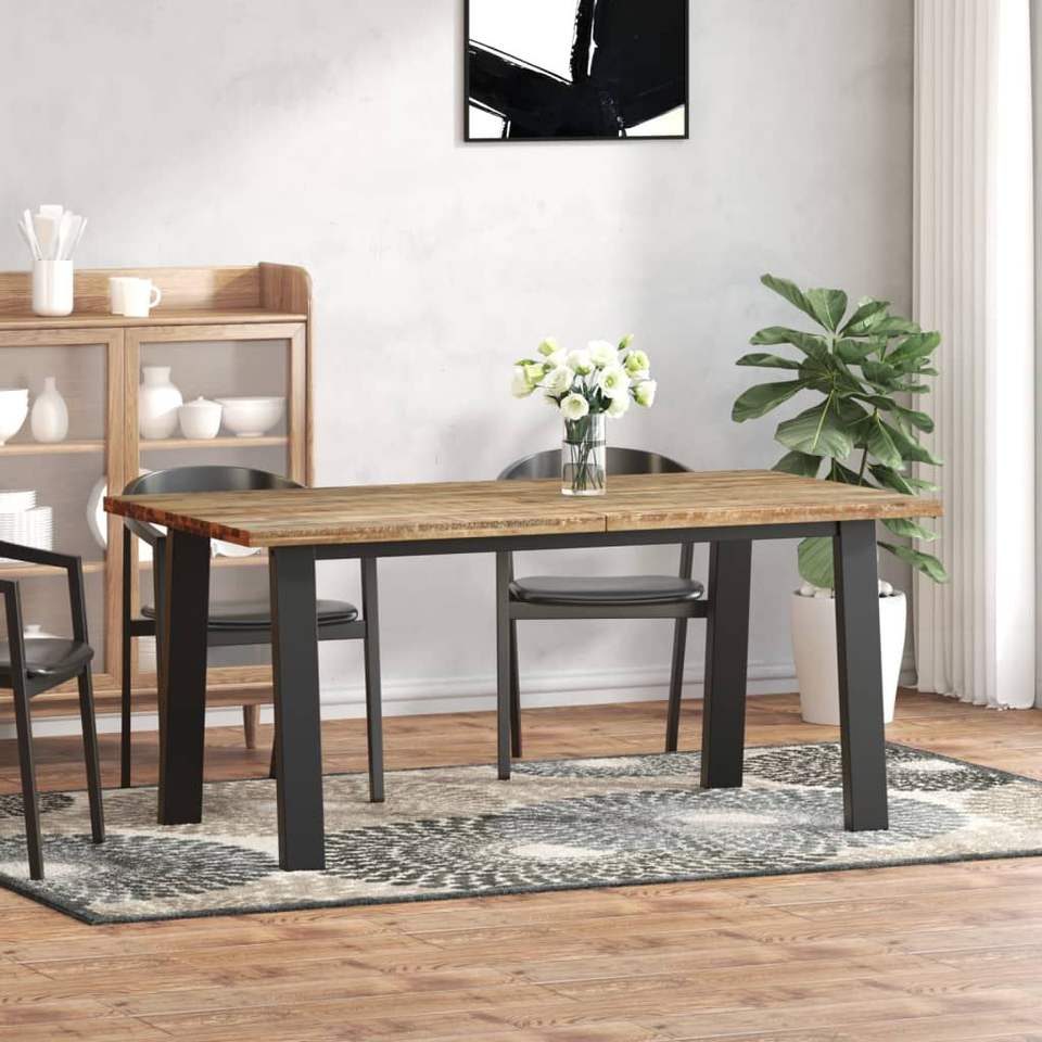 Solid Acacia Wood Dining Table Brown and Black 67 X 35 Inches