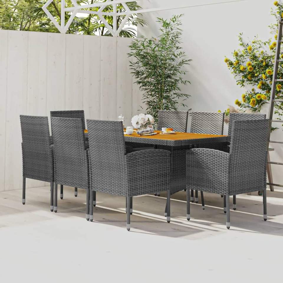 Solid Acacia Wood Outdoor Dining Set Grey PE Rattan Steel Garden Furniture 6 Seater Weather Resistant Contemporary Design