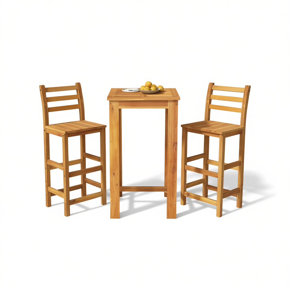 Set Bar da Giardino in Legno Massello di Acacia con 2 Sedie e Tavolo, Finitura Naturale, Arredamento da Esterno Durevole dal Design Moderno