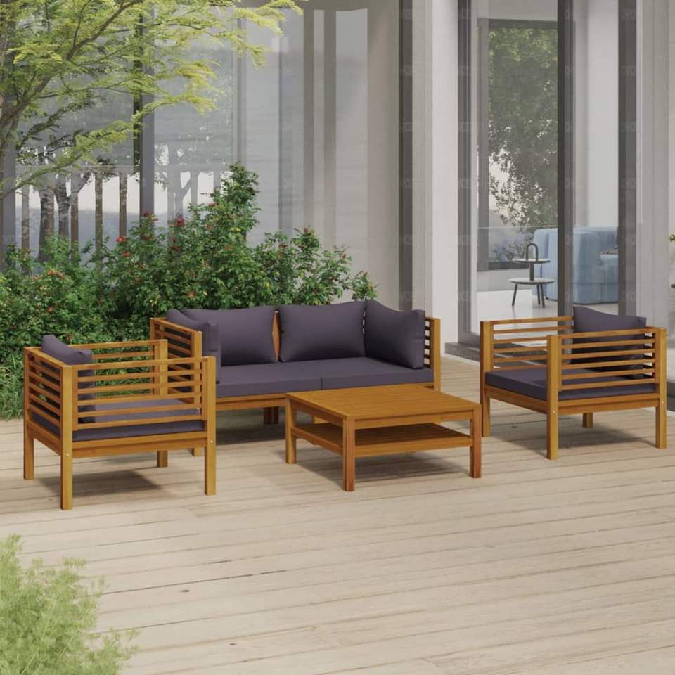 Set Lounge in Legno Massello di Acacia con Cuscini Grigio Scuro, Arredamento da Giardino per Esterni, 4 Posti, Design Contemporaneo, Resistente alle Intemperie