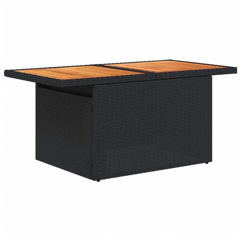 Solid Acacia Wood Outdoor Table with Black PE Rattan and Powder-Coated Steel Garden Table