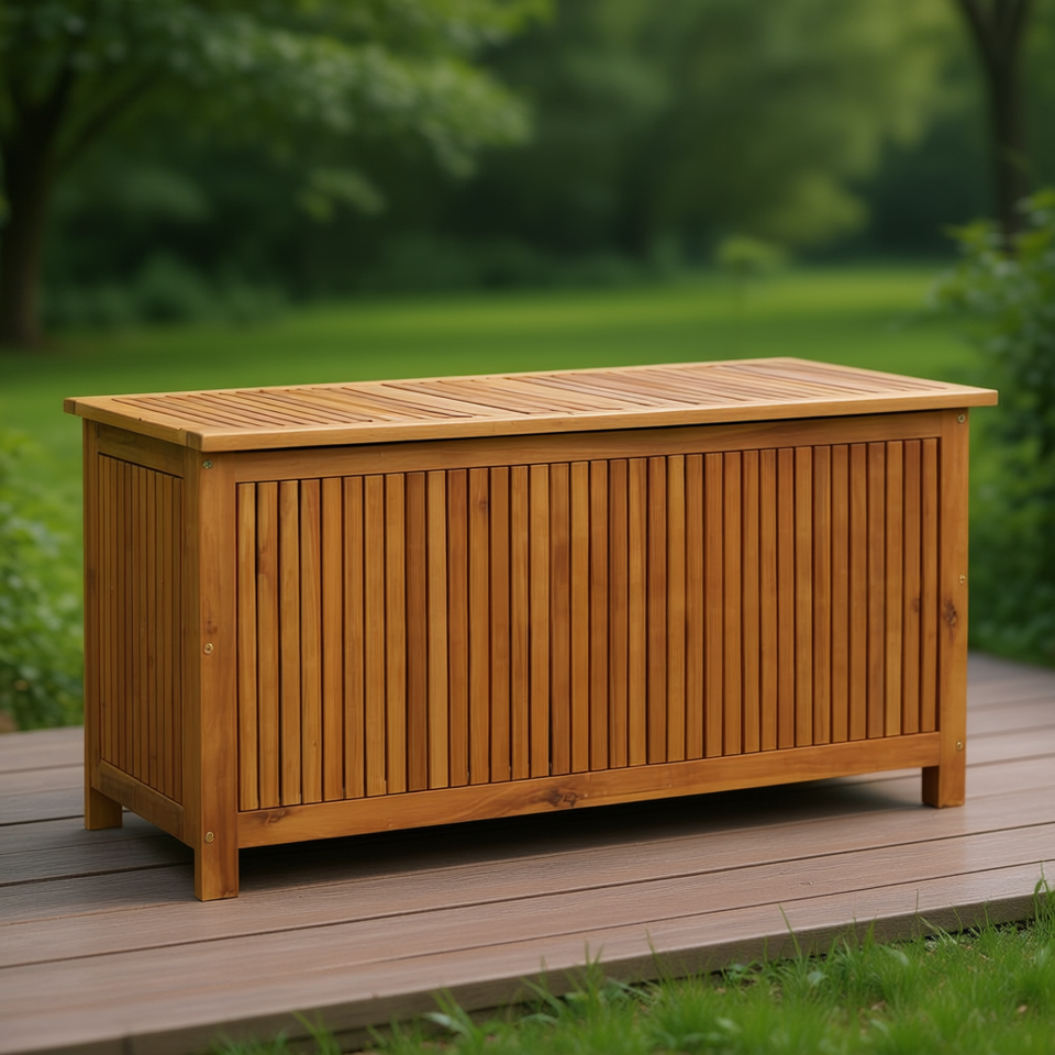 Solid Acacia Wood Patio Storage Box 44.5x19.7x22.8 Outdoor Durable Storage Solution