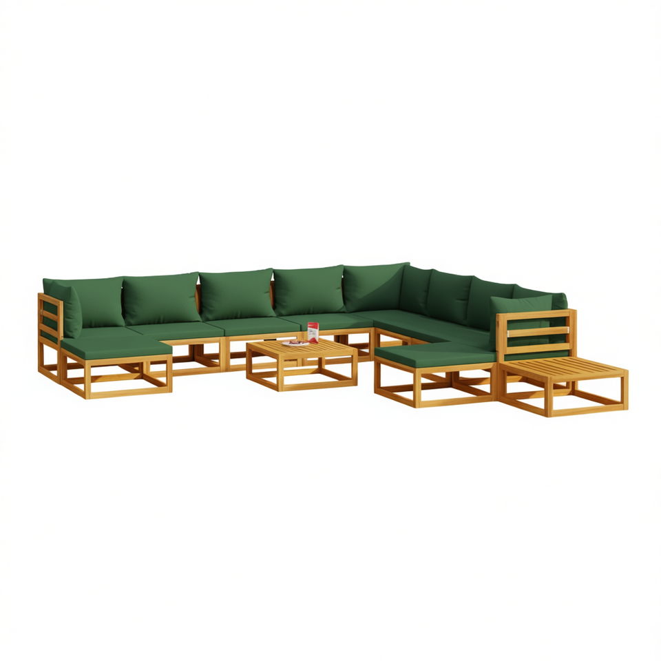 Solid Acacia Wood Garden Lounge Set Green Cushions Outdoor Furniture 6 Seater Contemporary Design