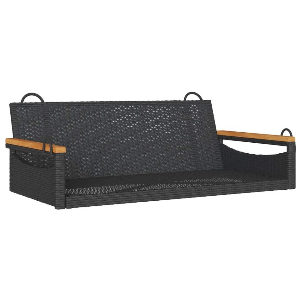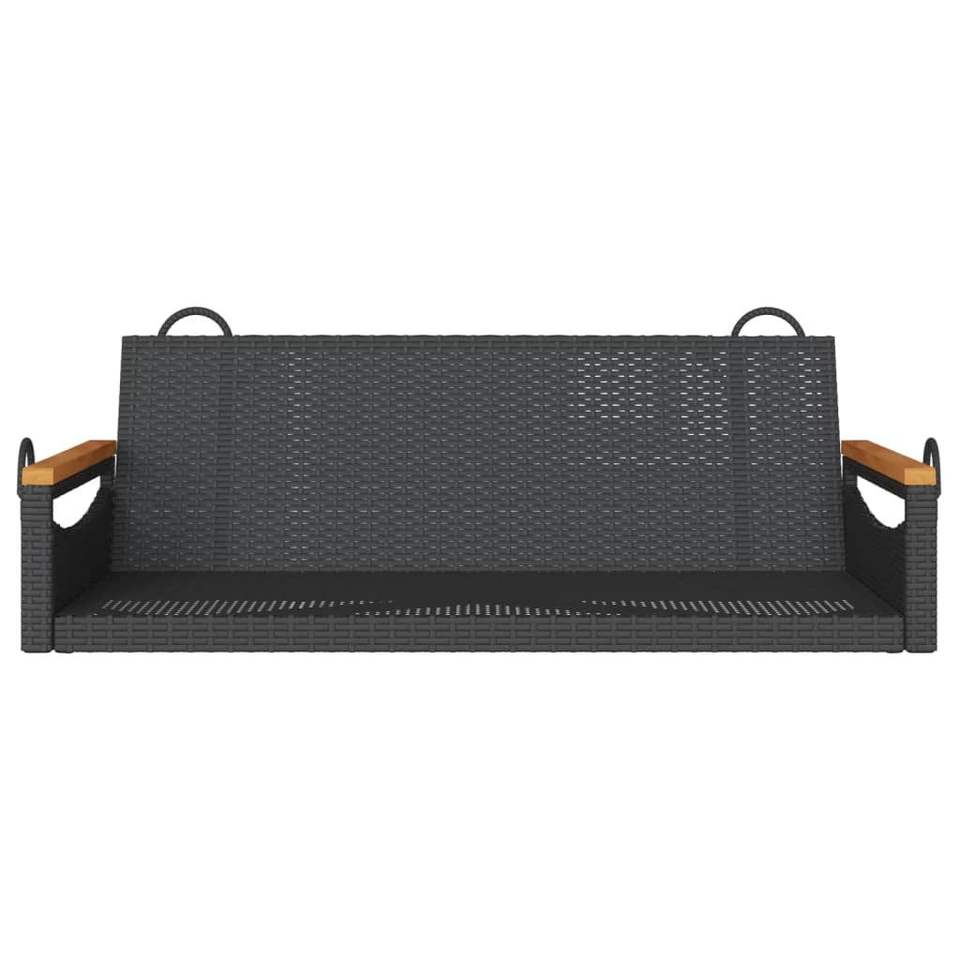 Solid Acacia Wood Swing Bench in Black PE Rattan with Powder-Coated Steel Elegant Patio Bench