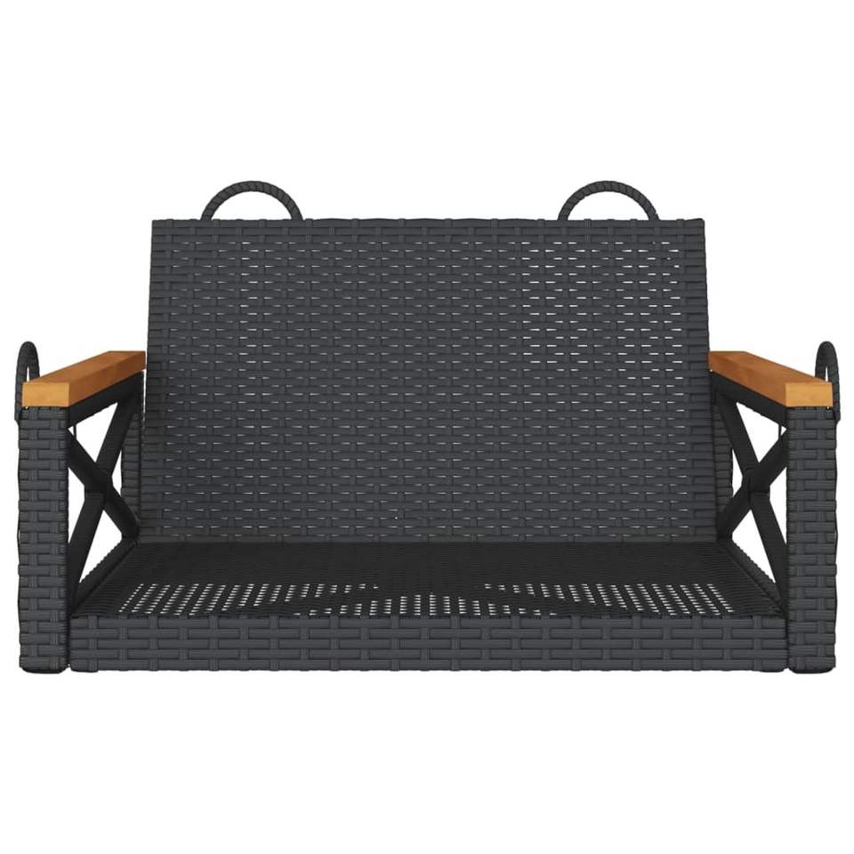 Solid Acacia Wood Swing Bench with Black PE Rattan Powder-Coated Steel for Patio Use