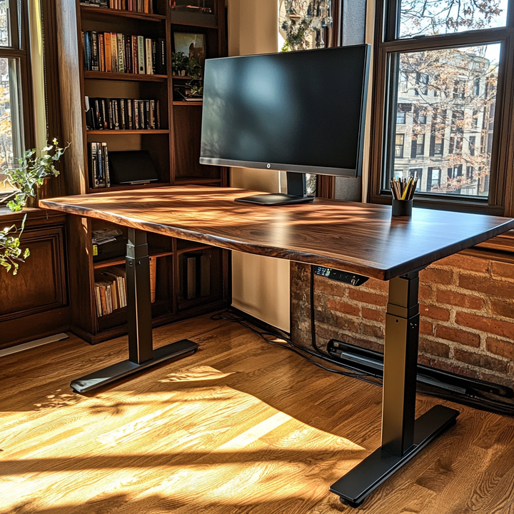 Durable Construction: Made from solid black walnut wood and a sturdy metal frame, this standing desk is built to last, providing a long-lasting solution for your home office or hotel furniture needs.