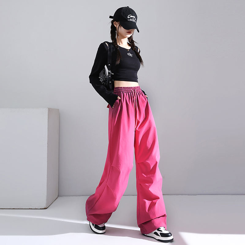 Pantaloni Cargo a gamba larga con laccio a vita alta stile americano Casual pantaloni della tuta a gamba larga