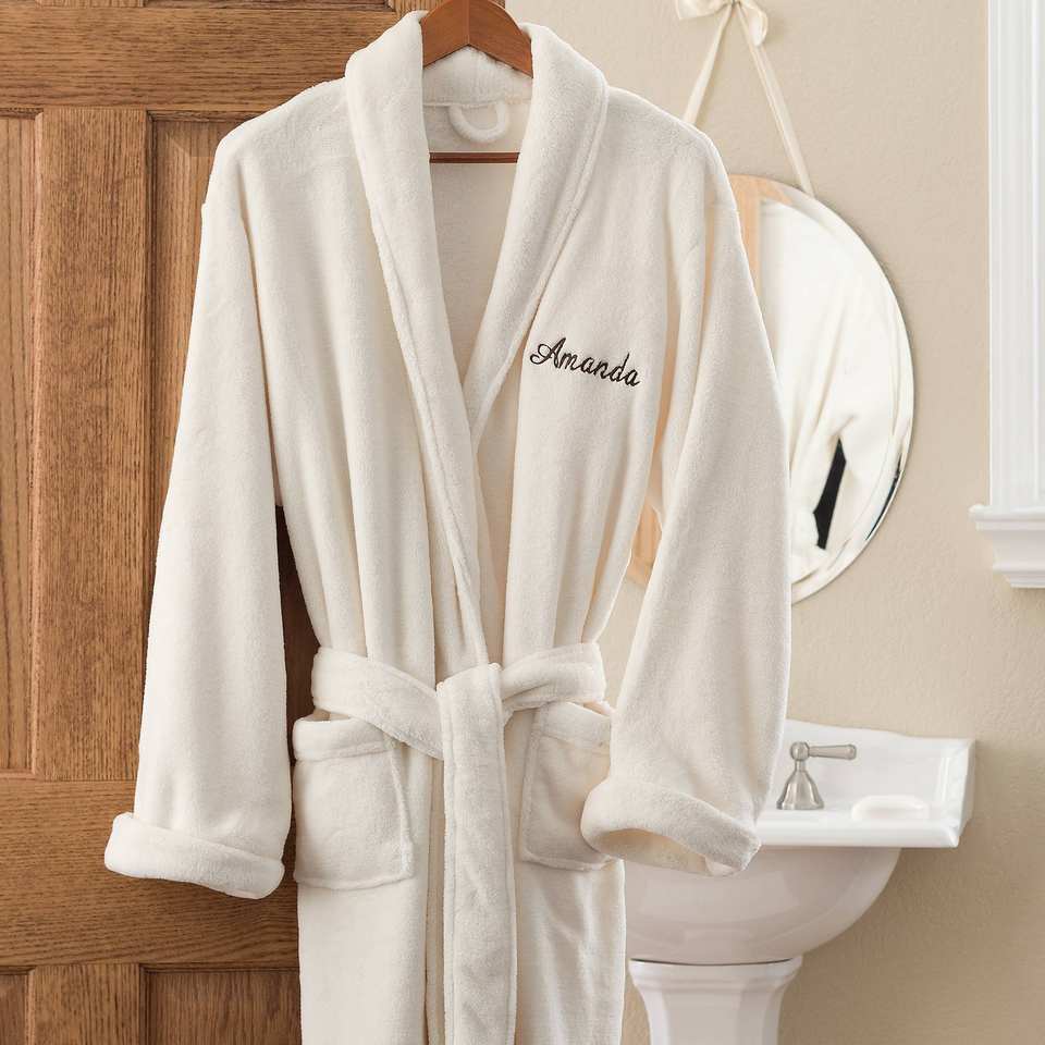 Accappatoio Spa con collo a scialle con Logo personalizzato in pile di corallo tinta unita