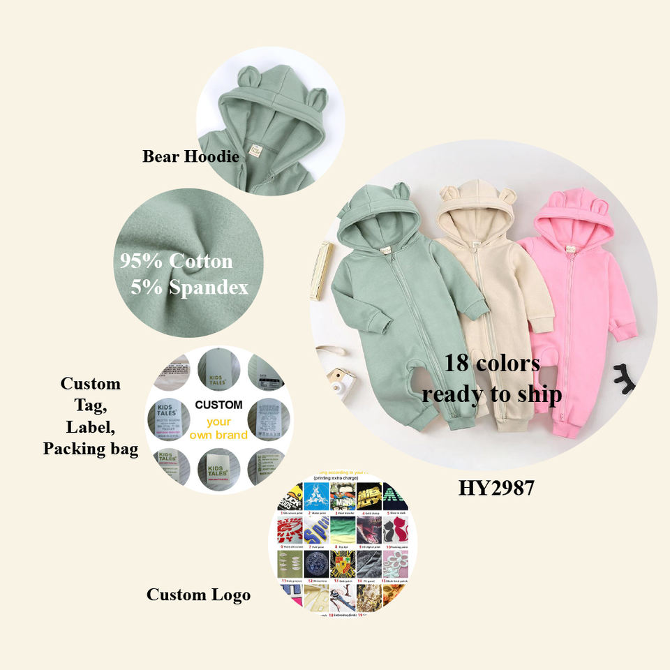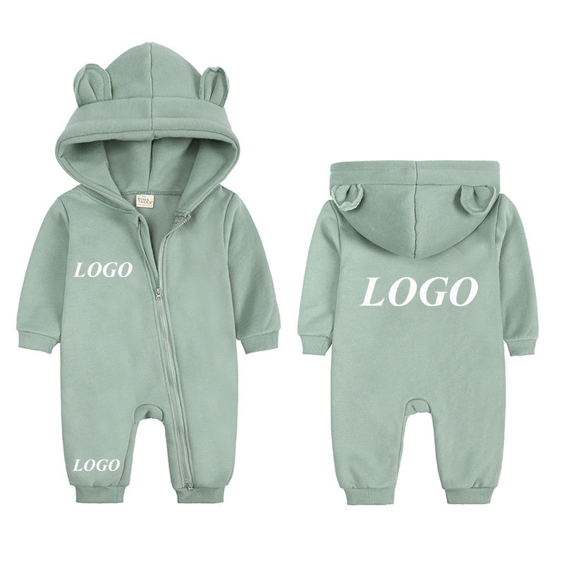 Tutina per Neonati in Cotone Tinta Unita, Pagliaccetto Invernale con Cappuccio a Orecchie di Orso e Cerniera, Abbigliamento per Neonati Maschi e Femmine