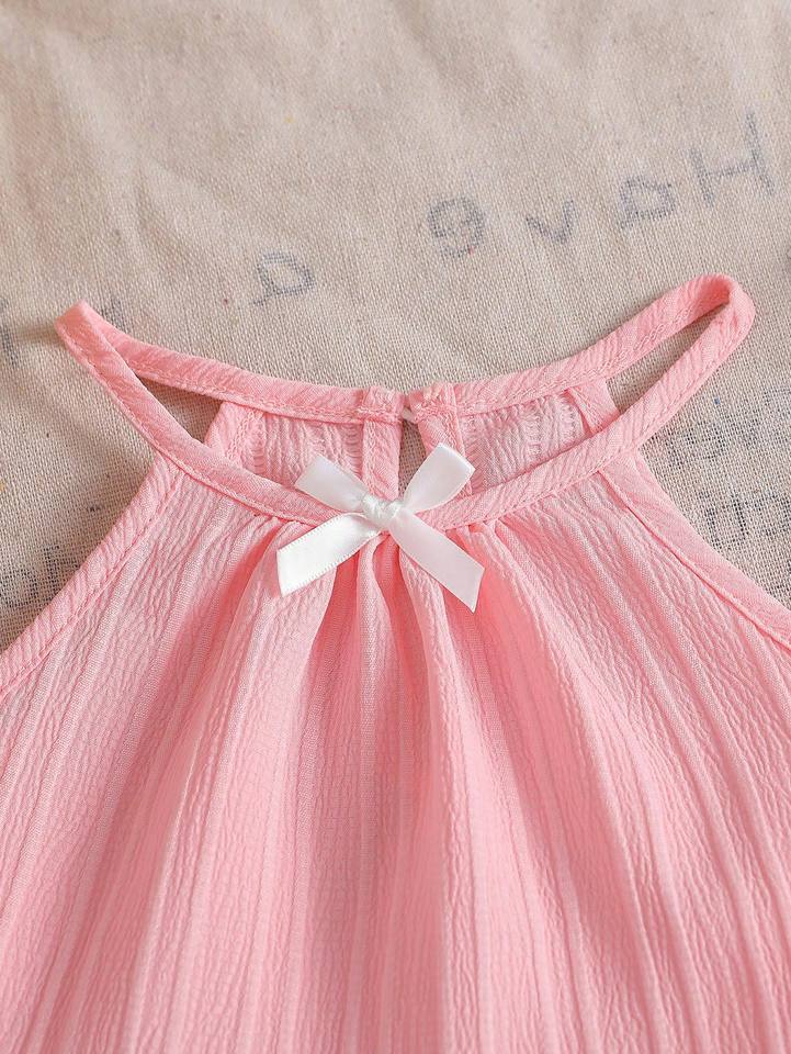 Set di Abbigliamento per Bambina 2 Pezzi: Giacca con Fiocco Tridimensionale e Orlo a Balze, Pantaloni Dritti, Colore Unico, 100% Cotone