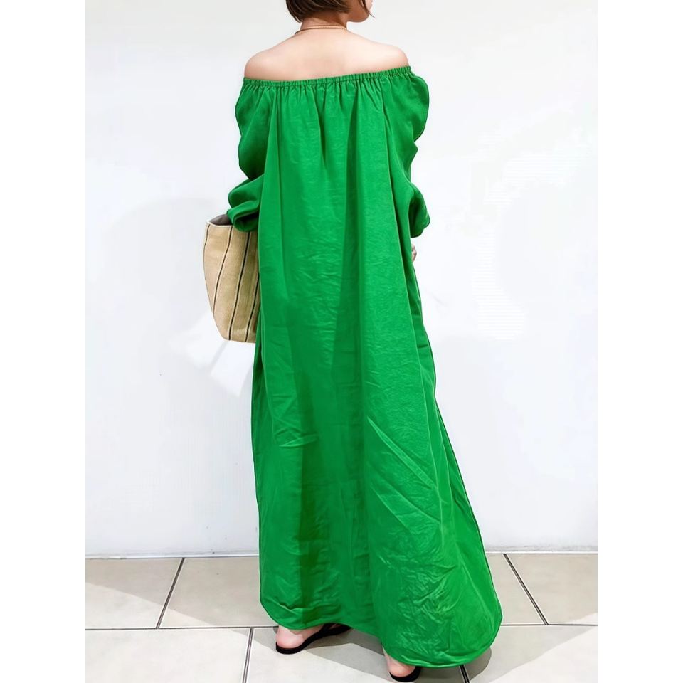 Abiti da Donna in Cotone e Lino Tinta Unita con Spalle Scoperte e Vestibilità Ampia alla Moda