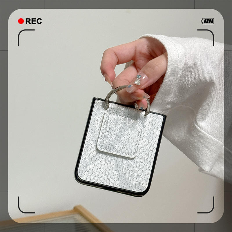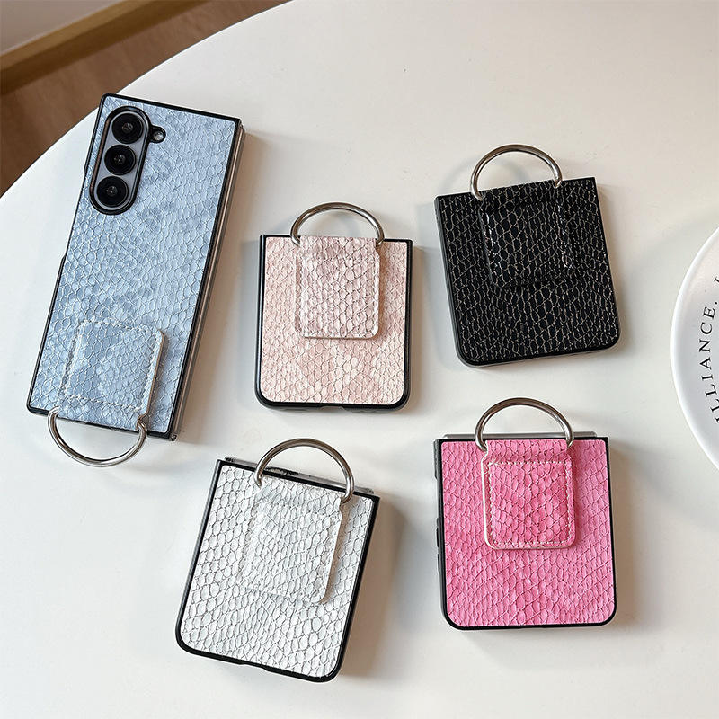 Custodia per Telefono Antiurto in PU con Motivo a Serpente Tinta Unita per Samsung Galaxy ZFlip7, Design con Anello, Cover Personalizzata per Huawei Pocket 2