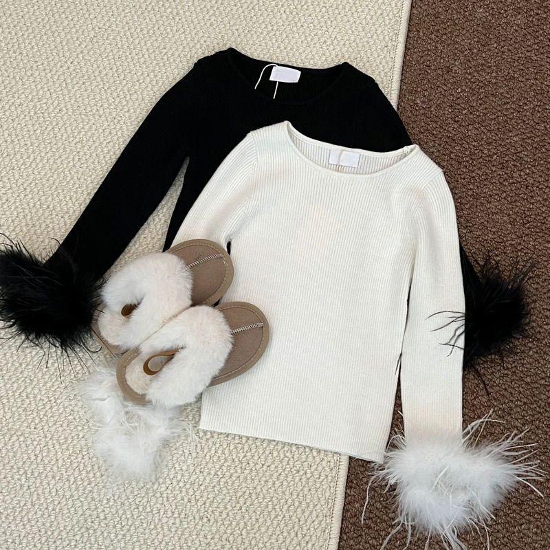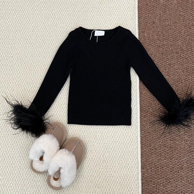 T-Shirt tinta unita per la primavera autunno per bambine in stile occidentale abbigliamento per bambini con nappe pelose maniche Casual camicia a fondo