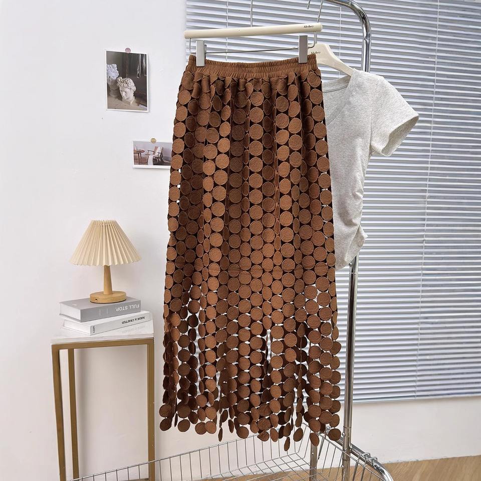 Gonna Lunga da Donna Tinta Unita con Vita Naturale e Nappe Rotonde Traforate