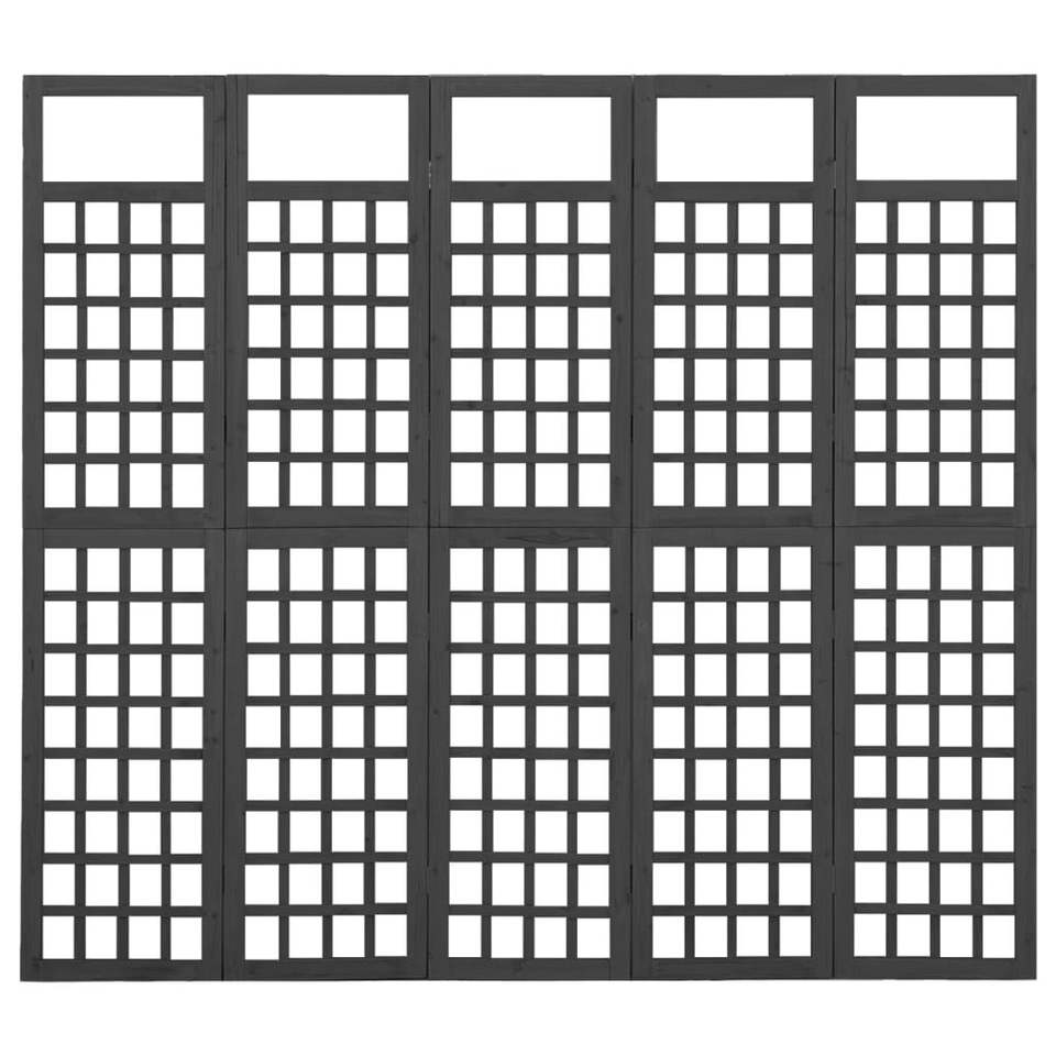Divisorio/Griglia a 5 Pannelli in Legno di Abete Massiccio Nero 200x180 cm
