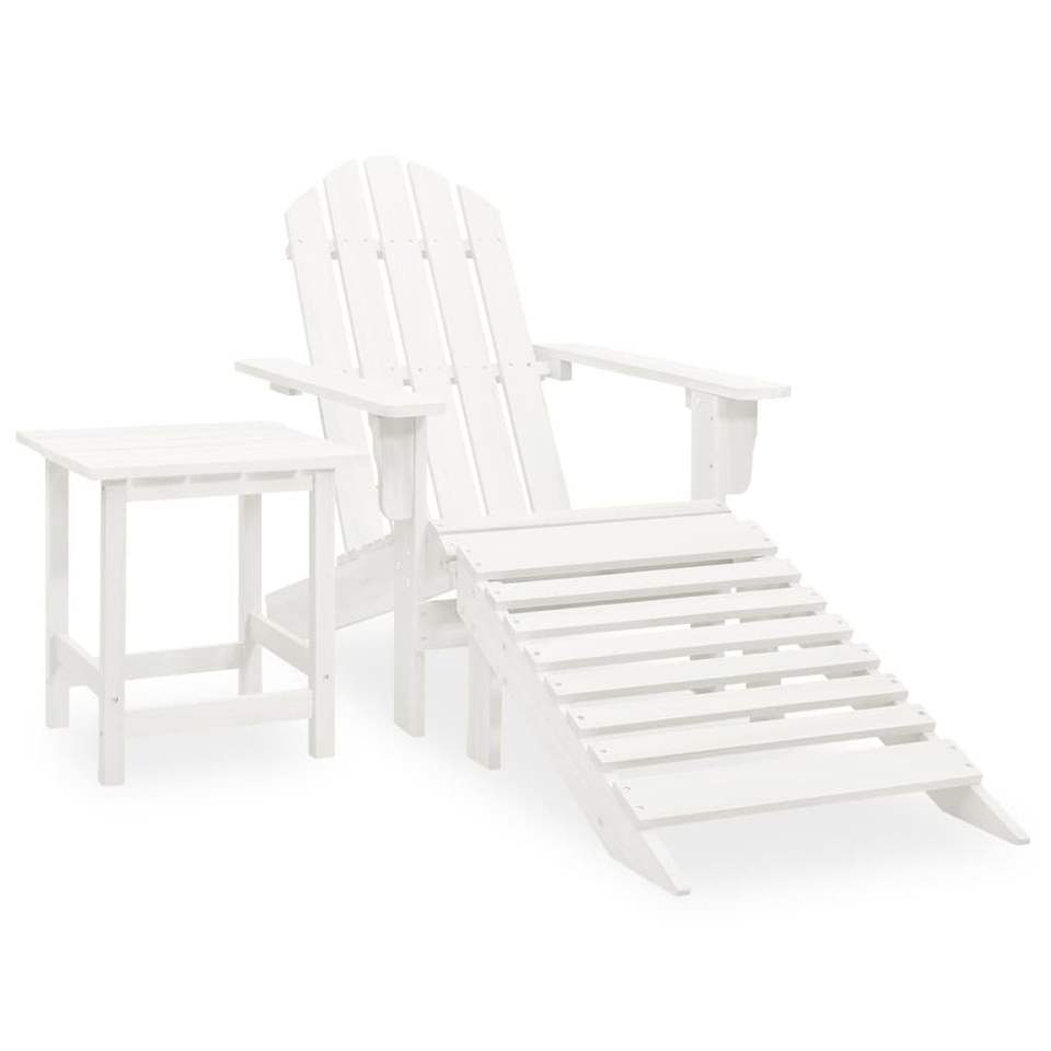 Solid Fir Wood Adirondack Chair Ottoman & Table Set White Patio Furniture