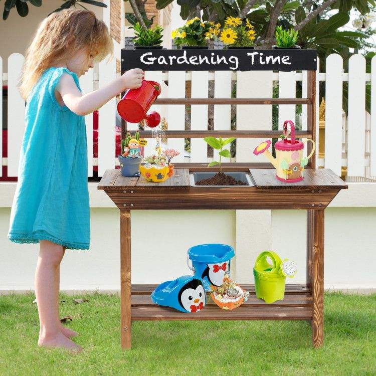 Tavolo da Giardinaggio per Bambini in Legno di Abete Massiccio, Cucina da Esterno in Legno, Altri Mobili