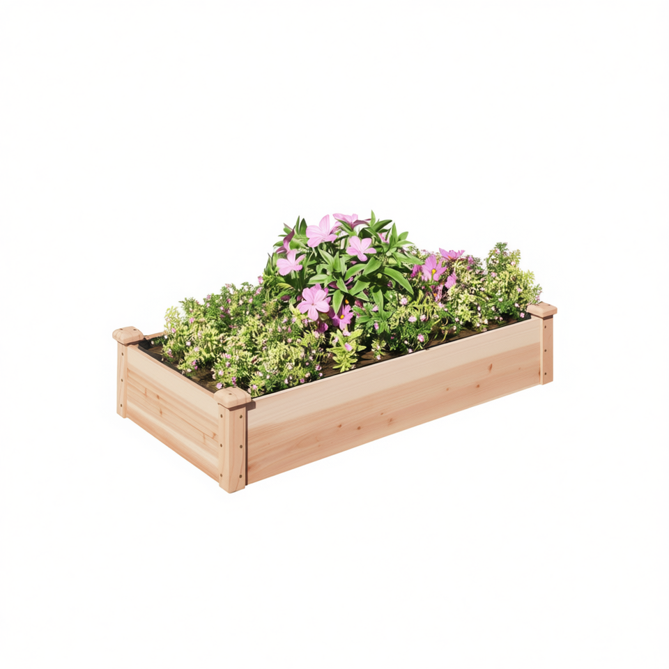 Fioriera Rettangolare da Giardino in Legno Massello di Abete, Misura Media, per Composizioni Stagionali da Esterno, Finitura Naturale