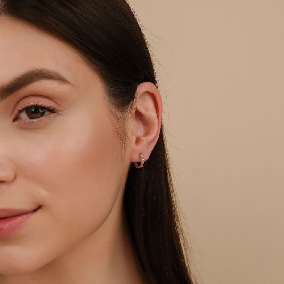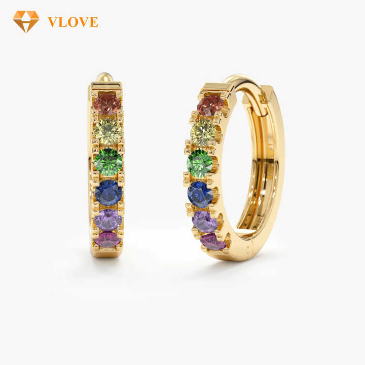 Orecchini a Cerchio Piccoli in Oro Massiccio 10K 14K 18K con Zaffiri Arcobaleno, Gioielli di Moda da Donna e Ragazza, Regalo 585