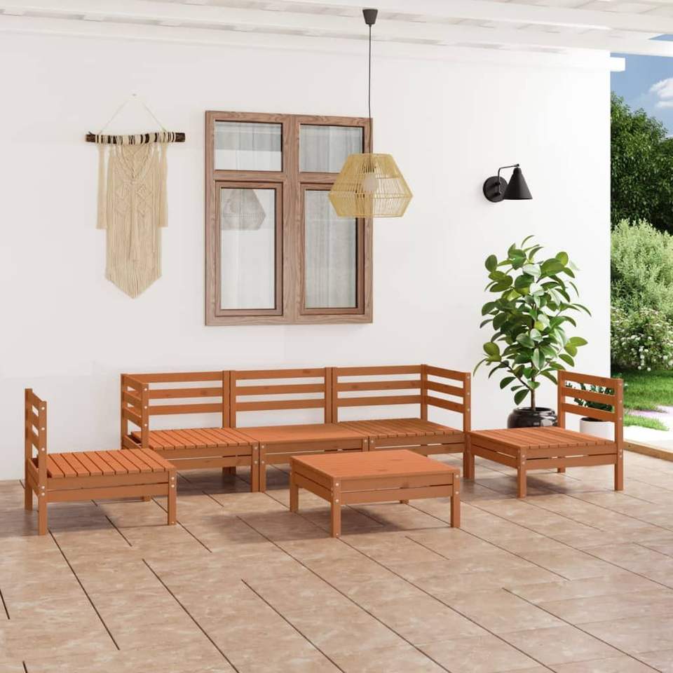 Solid Honey Brown Pinewood 6-Piece Patio Lounge Set