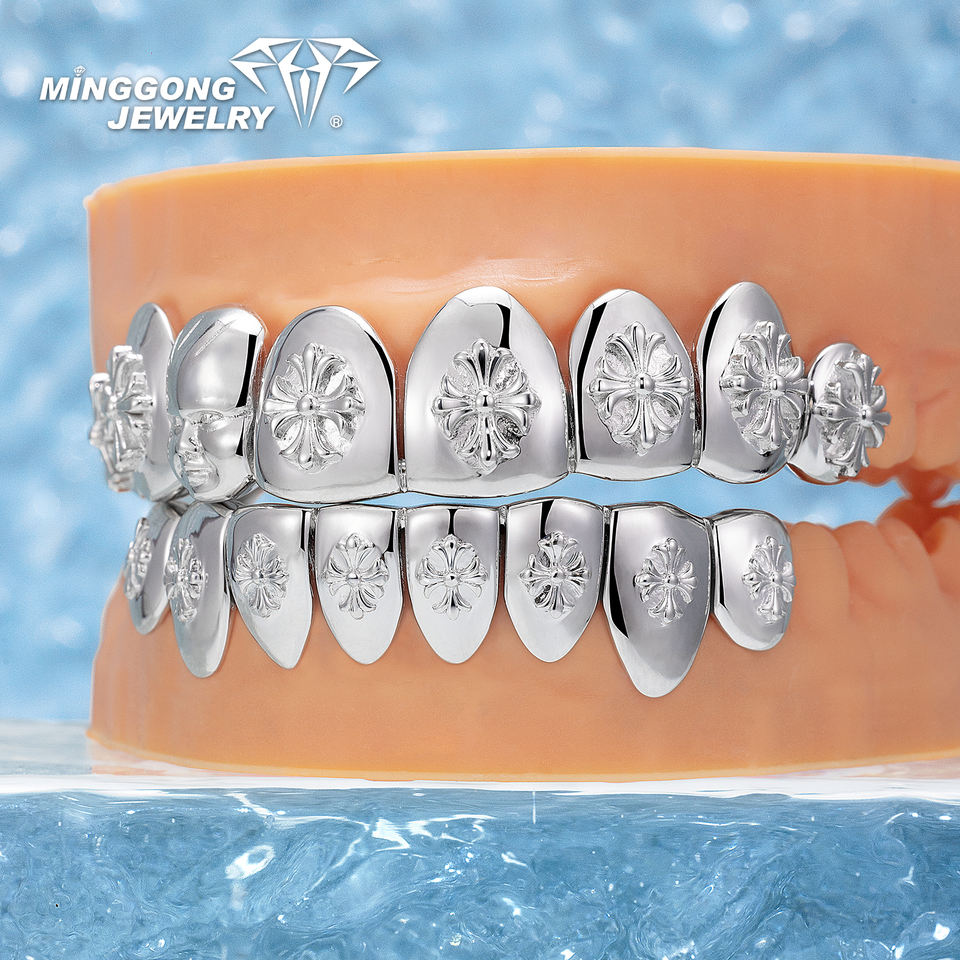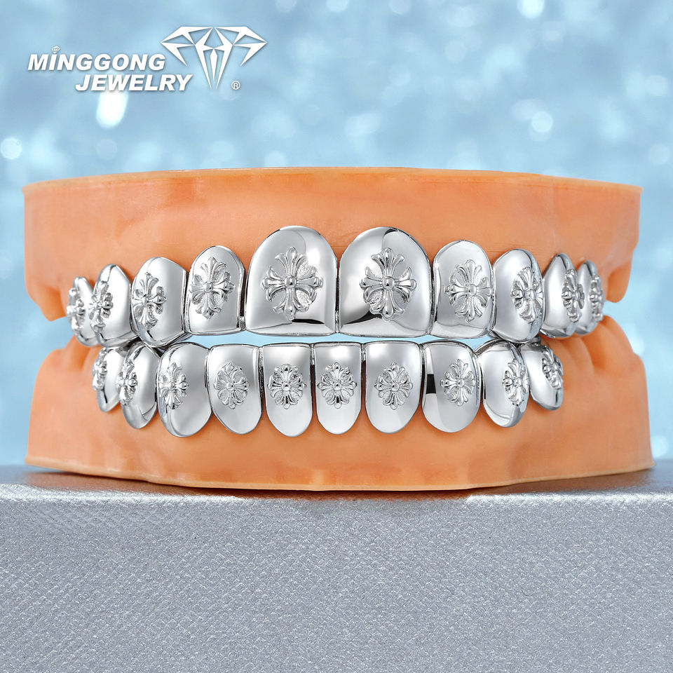 Solid Iris Crucifer Cross Grillz 10K 14K 18K Gold & 925 Sterling Silver Top 10 Bottom 10 Fashionable Teeth for Men and Women