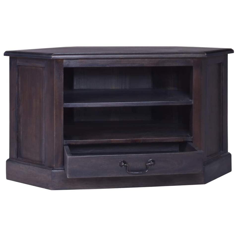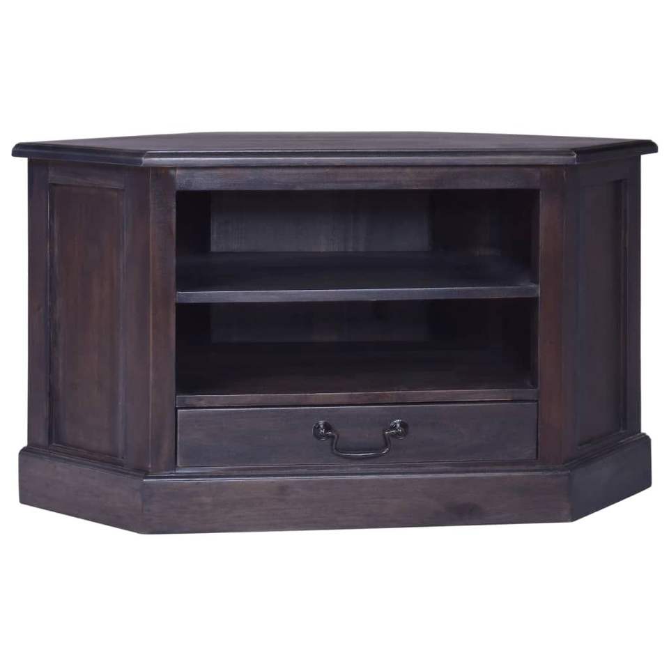 Solid Mahogany Wood Corner TV Cabinet in Light Black Coffee Elegant TV Stand