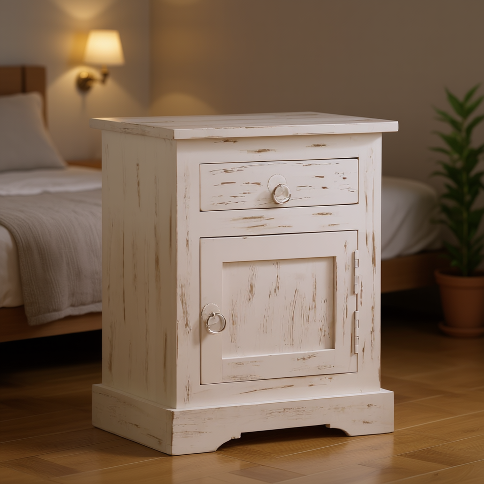 Solid Mango Wood Nightstand 15.7x11.8x19.7 White Storage Cabinet Bedroom Furniture Rustic Design