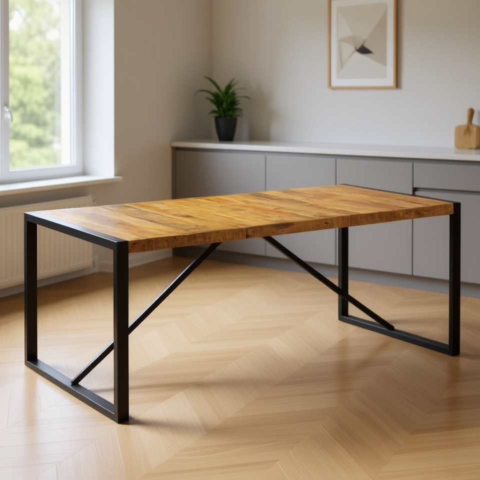 Tavolo da Pranzo in Legno Massello di Mango 70.9x35.4x29.5 Pollici con Gambe in Metallo, Design Rettangolare Industriale Moderno, Arredamento per la Casa