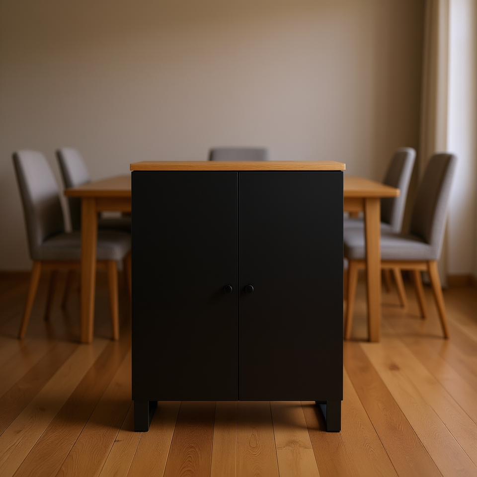 Credenza in Legno di Mango Massiccio, Colore Nero, Design Minimalista, Mobile Moderno per Sala da Pranzo, Armadio Contenitore
