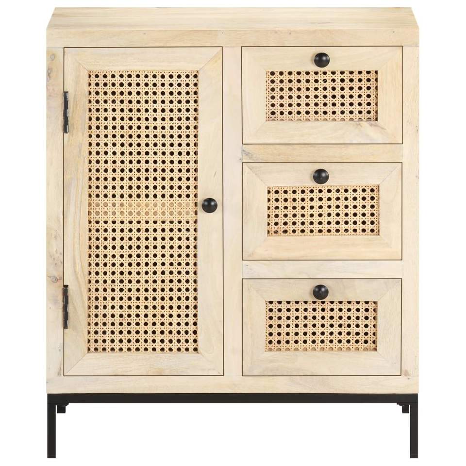 Credenza in Legno di Mango Massiccio, Colore Naturale, Dimensioni Medie, Design Moderno Rustico, Maniglia in Metallo, Arredamento per la Casa
