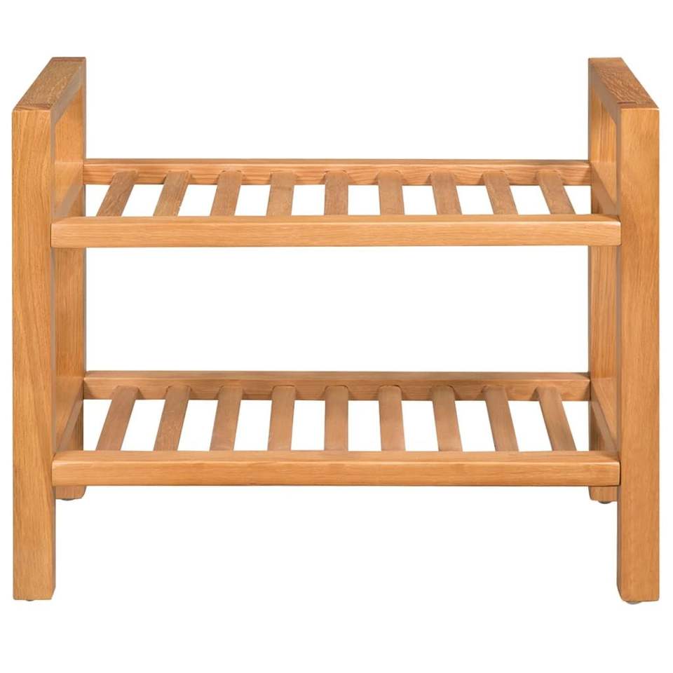 Solid Oak Wood 2-Shelf Shoe Rack 19.7"x10.6"x15.7" Stand for Shoes