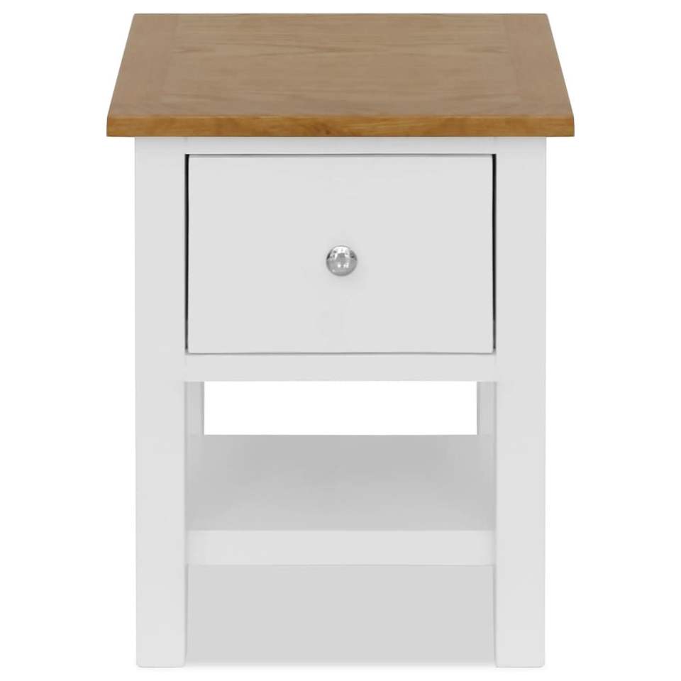 Comodino in Legno di Quercia Massello Bianco con Piano Marrone, 1 Cassetto Portaoggetti, Arredamento Camera da Letto