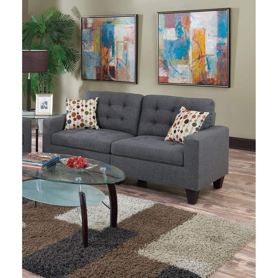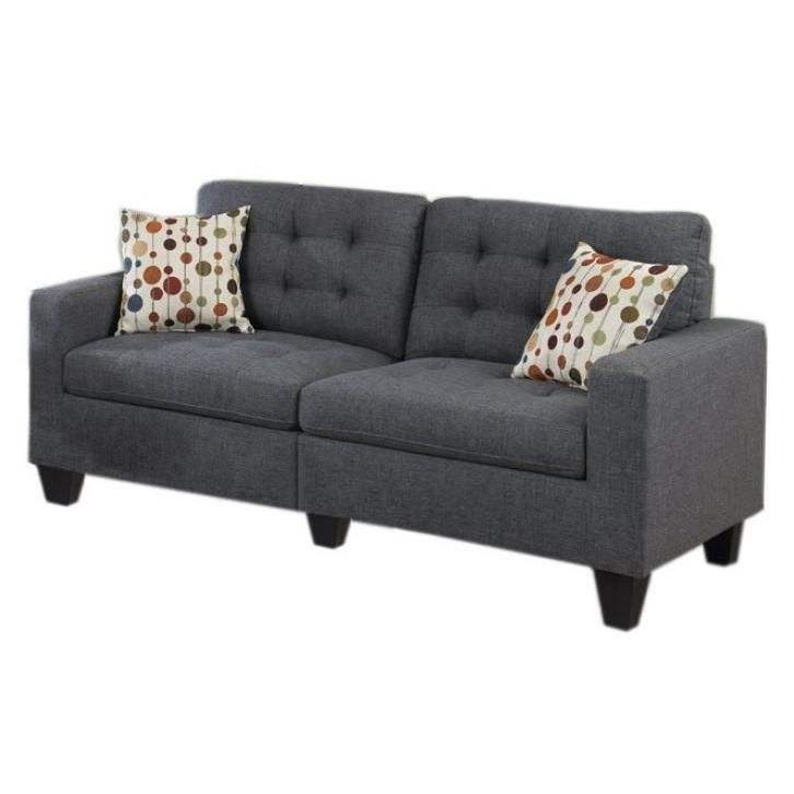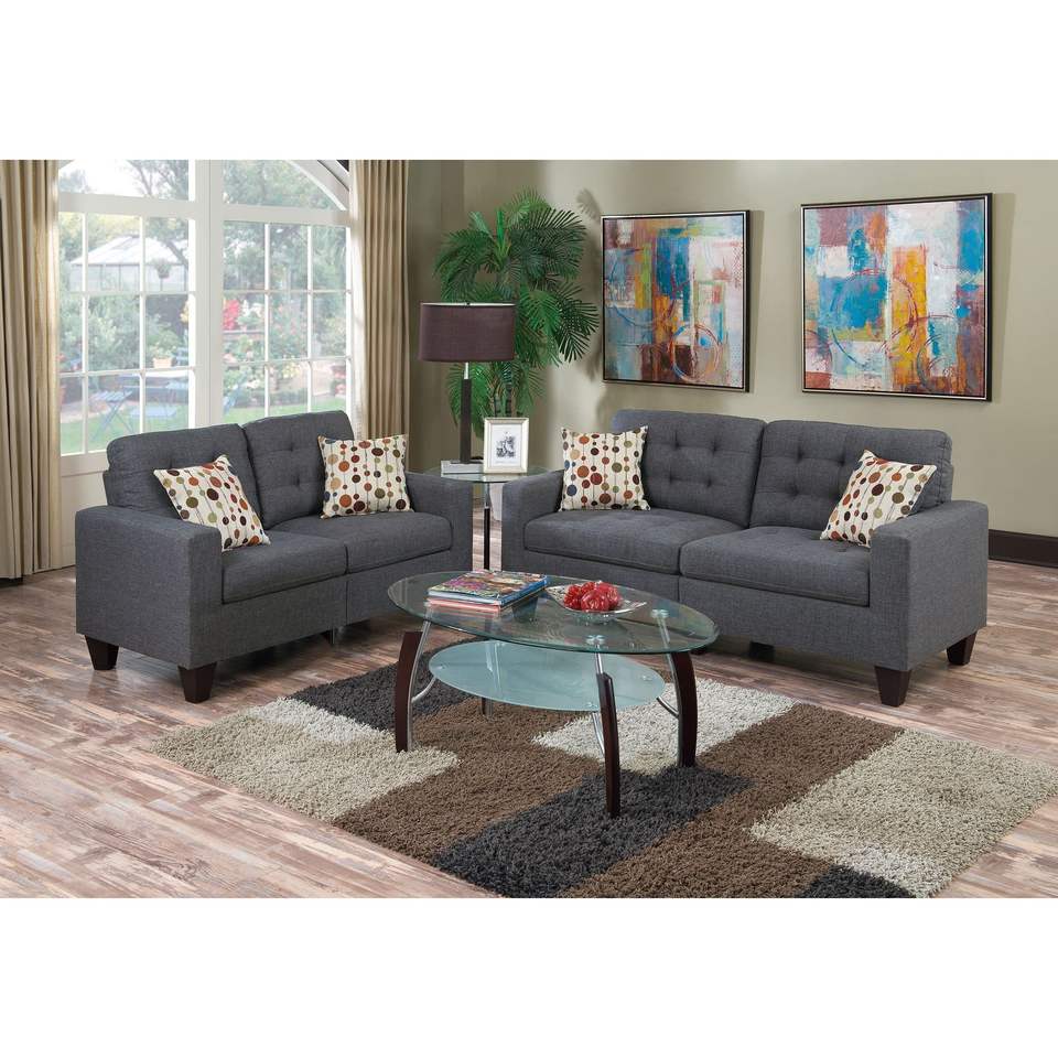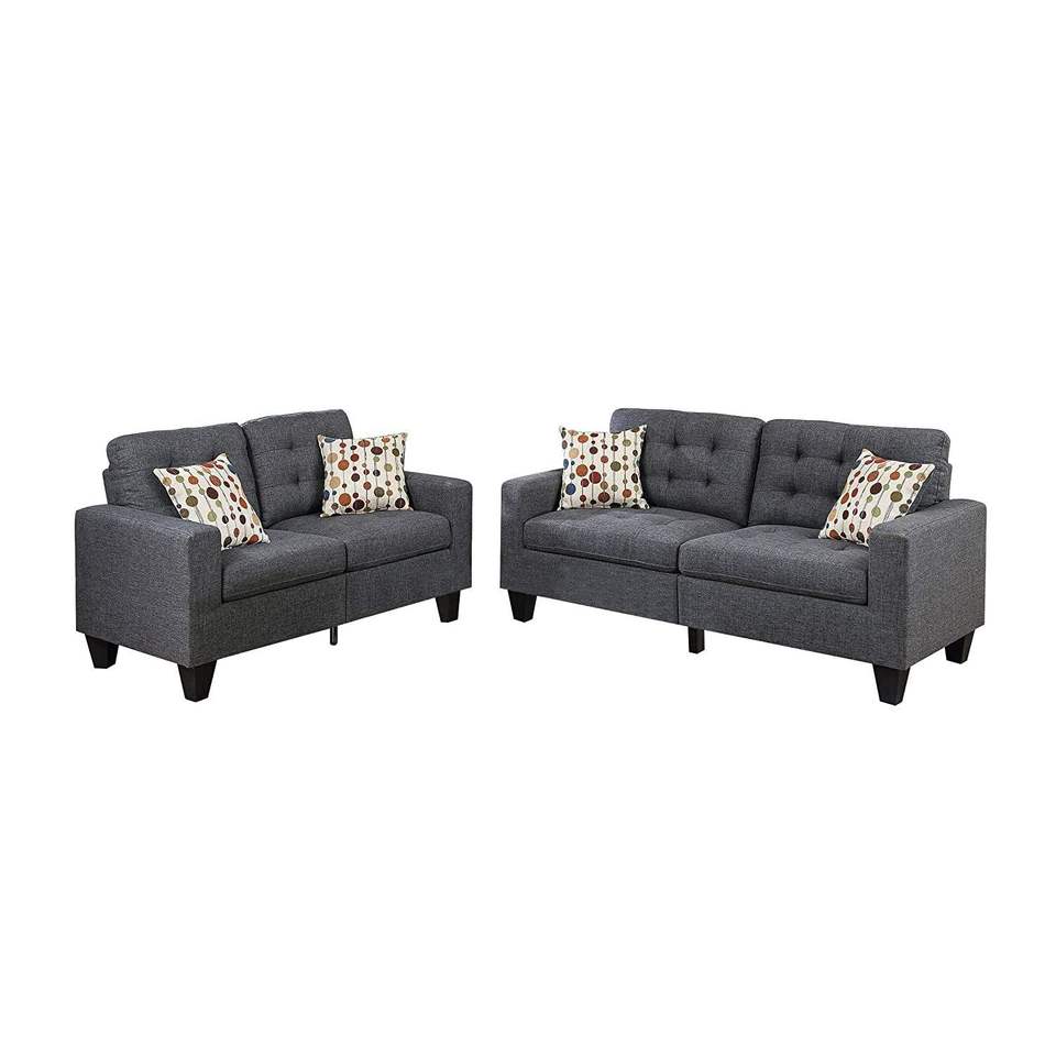 Set Divano e Poltrona in Pino Massiccio, 2 Pezzi, Blu-Grigio, Imbottito in Polifibra, con Cuscini, Arredamento per Soggiorno