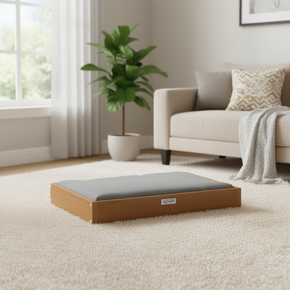 Solid Pine Wood Dog Bed 28.1 X 21.3 X 3.5 In Comfortable Pet Bed Indoor Minimalist Rectangle Style
