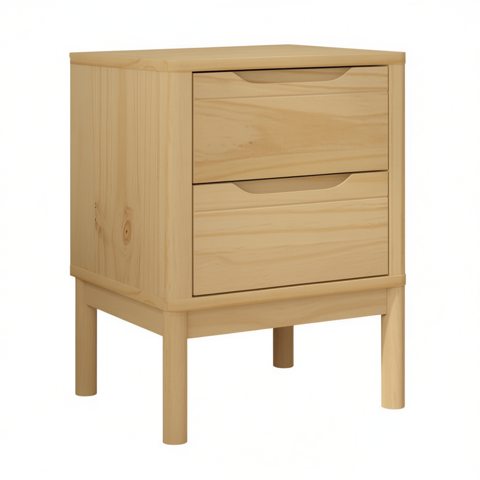 Comodino in Legno di Pino Massiccio con 2 Cassetti, Mobile Moderno Scandinavo per Camera da Letto, Armadietto Portaoggetti