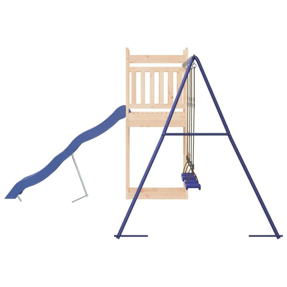 Solid Pine Wood Outdoor Playset with Large Durable Swings Natural Wood Product