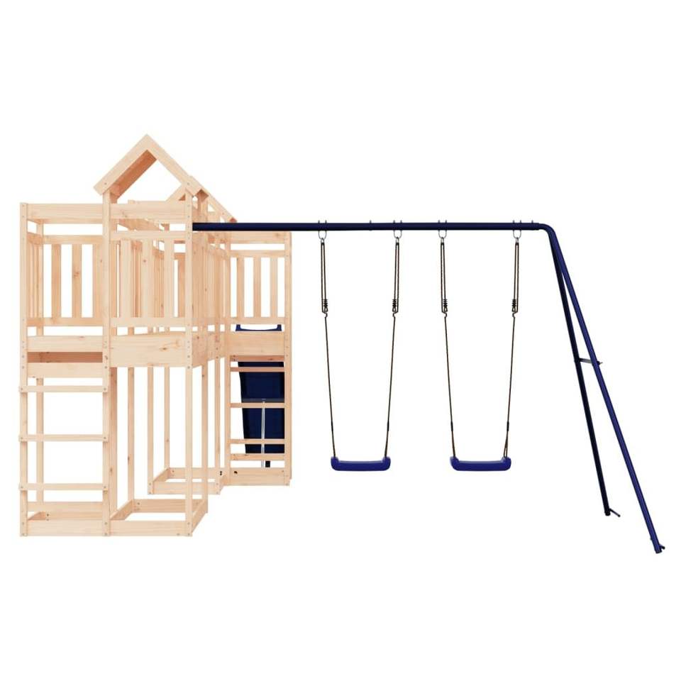 Solid Pine Wood Outdoor Playset with Large Swings Natural Wood Design