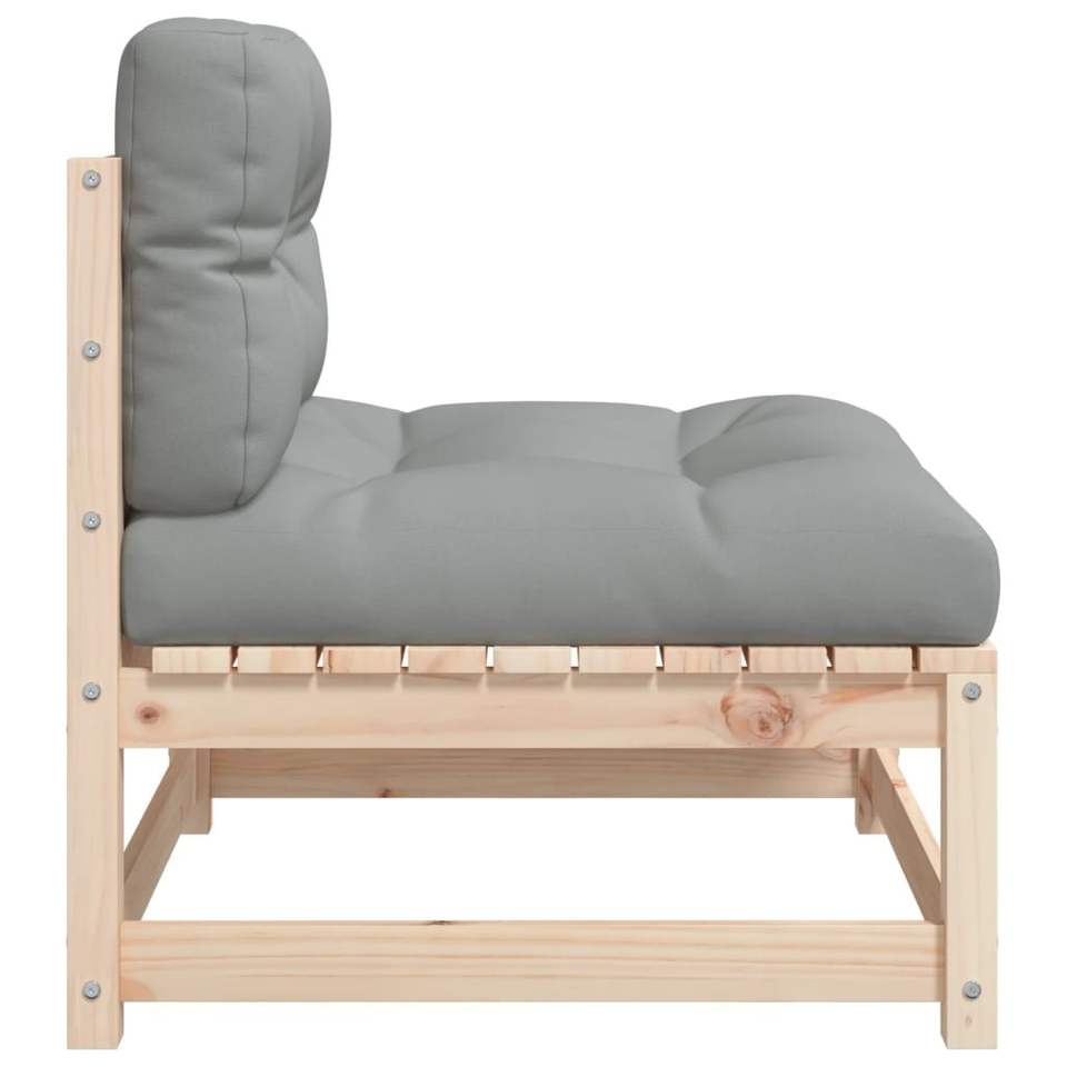 Set di Mobili da Giardino in Legno di Pino Massiccio con Cuscini Grigi, Design Scandinavo Durevole