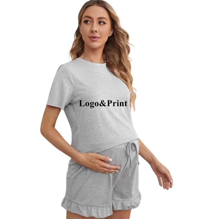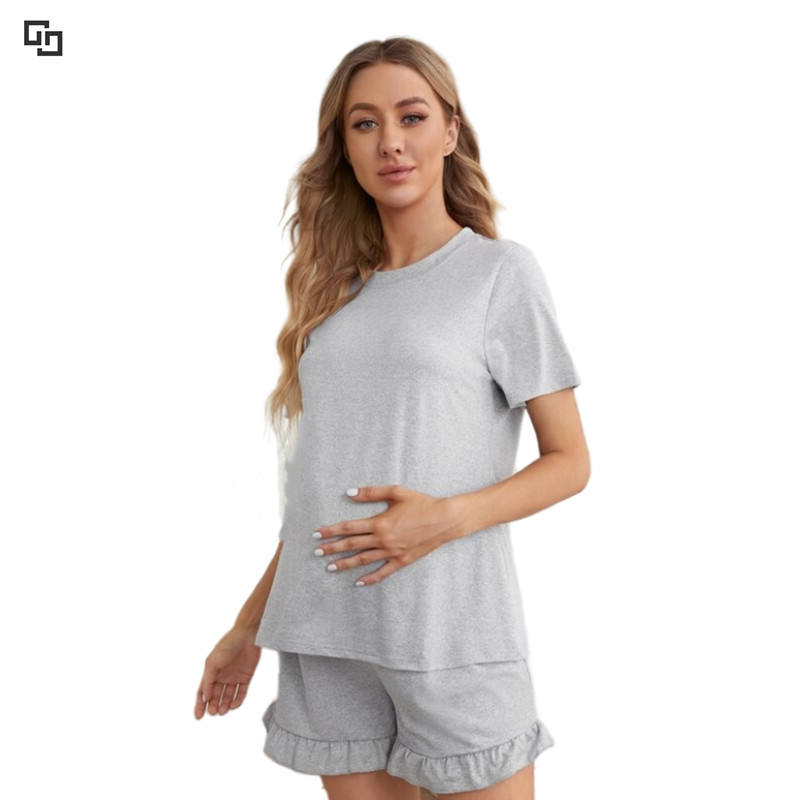 Pjs corti in gravidanza tinta unita per allattamento al seno camicia pigiama 2 pezzi vestiti Maternity estivi pigiami di bambù