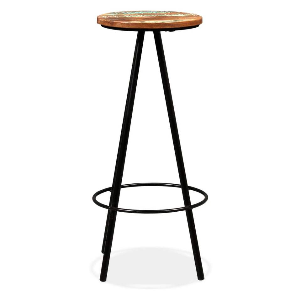 Solid Reclaimed Wood And Steel Bar Stools Multicoloured Industrial Modern Home Bar Furniture Set Of 2