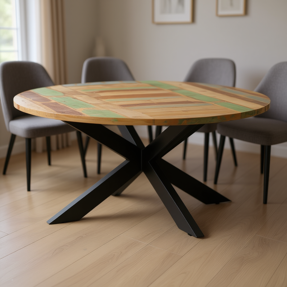 Tavolo da pranzo rotondo in legno massello di recupero 68,9x29,5 pollici, design elegante, gambe in metallo, arredamento per la casa