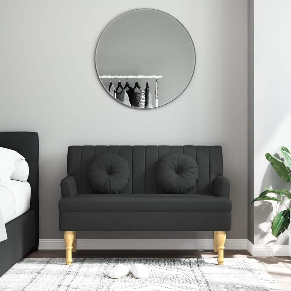Solid Rubber Wood Bench with Black Fabric (100% Polyester) Living Room Furniture