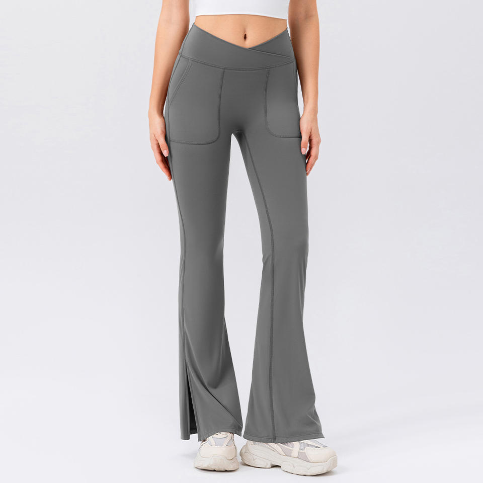 Pantaloni da yoga morbidi solidi da donna pantaloni da palestra elasticizzati in nylon di alta qualità con apertura delle gambe per allenamento sportivo da corsa pantaloni attillati