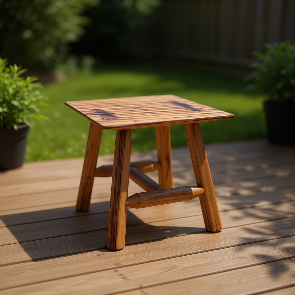 Tavolino da esterno in legno massello di abete rosso, design in legno bruciato, resistente, marrone, 30x30x45 cm